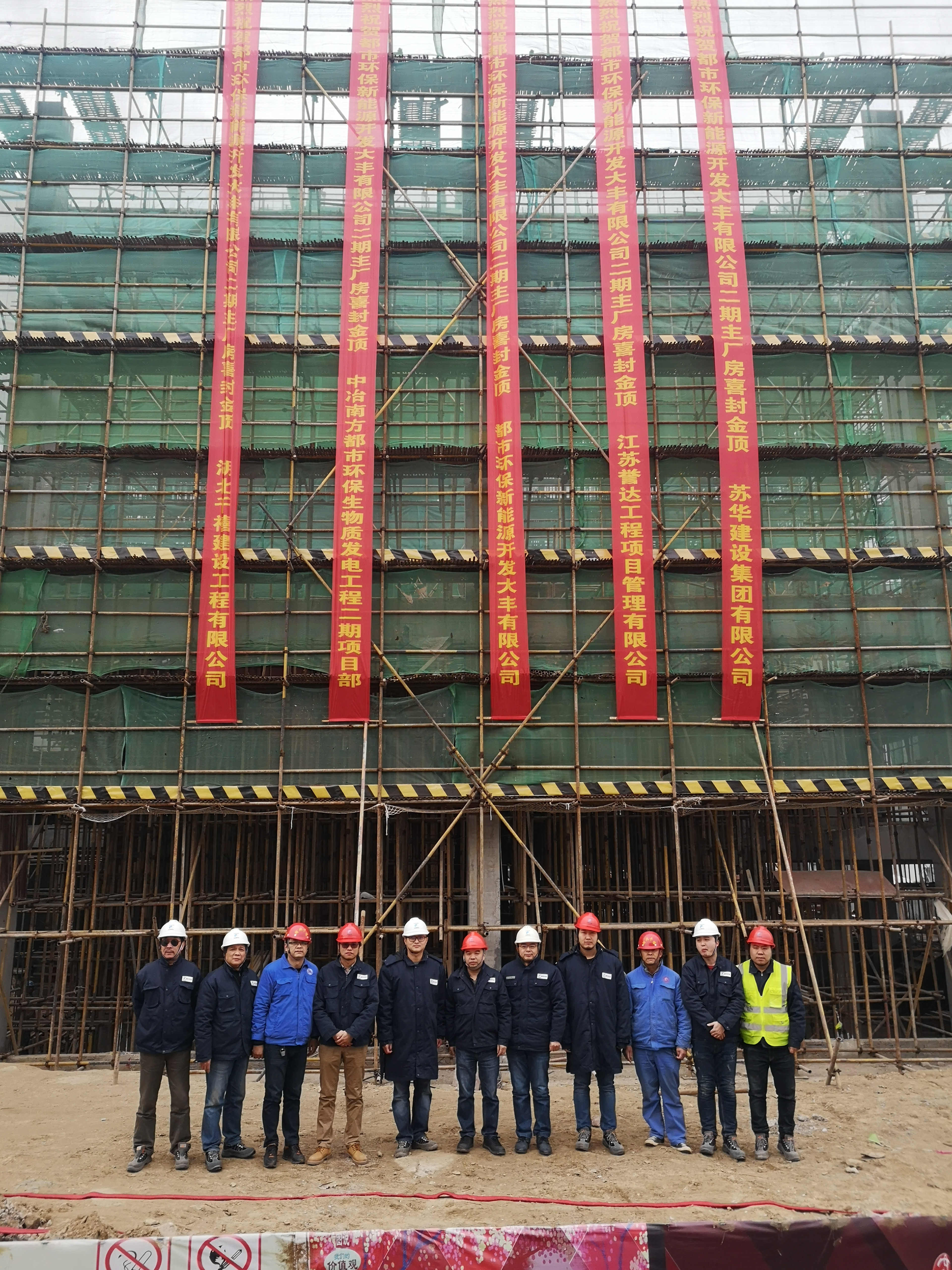2019年1月28日15时,都市环保新能源开发大丰有限公司生物质发电二期工程主厂房主体结构顺利封顶,圆满实现主厂房结构封顶这一个重要的里程碑节点。大丰子公司总经理胡文杰、副总经理杨帆及公司项目管理室副主任周宏伟等领导共同出席了仪式。