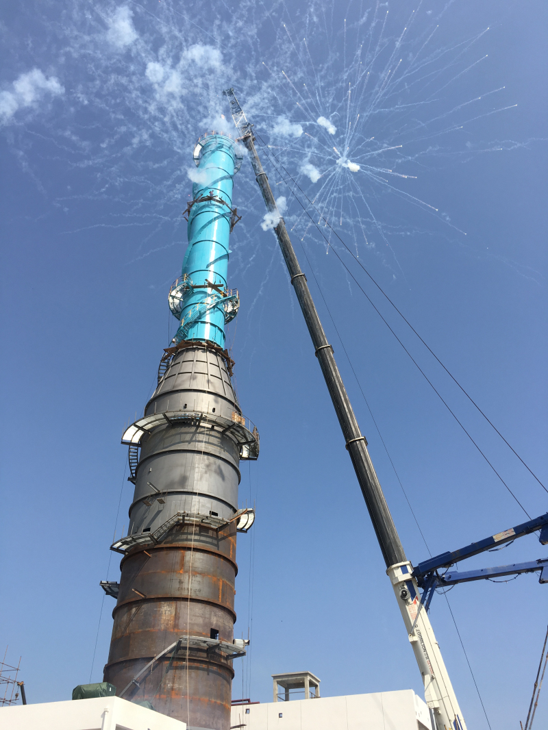 本工程为青拓集团不锈钢新材料项目的一期150㎡烧结烟气脱硫工程。自项目开工以来,项目部克服了项目现场湿热多雨、厂区施工道路不便以及今年高频次的台风等诸多不利影响,与各施工单位团结协作,采取一切有利措施,确保工程有序推进。为弥补多次台风及异常多降雨天气对脱硫工程施工的影响,项目部组织施工单位抓住有利天气24小时轮班,加班加点近一个月,如期实现了脱硫塔本体结构封顶这一里程碑节点。在现场诸多施工项目中(如施工质量、施工进度以及现场安全文明施工等)获得了业主的多次肯定,充分体现出了都市环保严谨的项目管理作风。