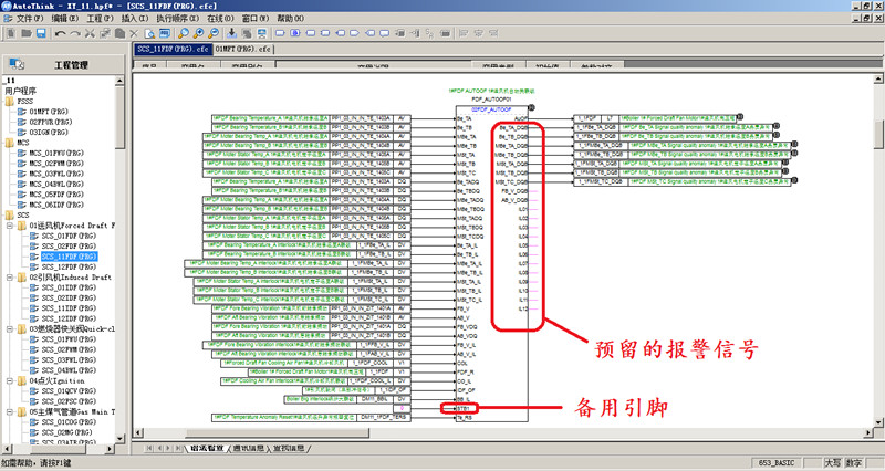 程序方面,根据以往编程经验进行逻辑总结归类,将各火电项目变化不大和重复利用的逻辑都分别编译成块,方便调用。通过反复的程序调试和思索,调整不方便检修的段落,留有一定的备用引脚和常用的报警信号接口,提升程序移植时的通用性和易用性。程序编写过程中注意程序的归类、整洁和易读,方便以后维护人员检修设备时对程序的查询。