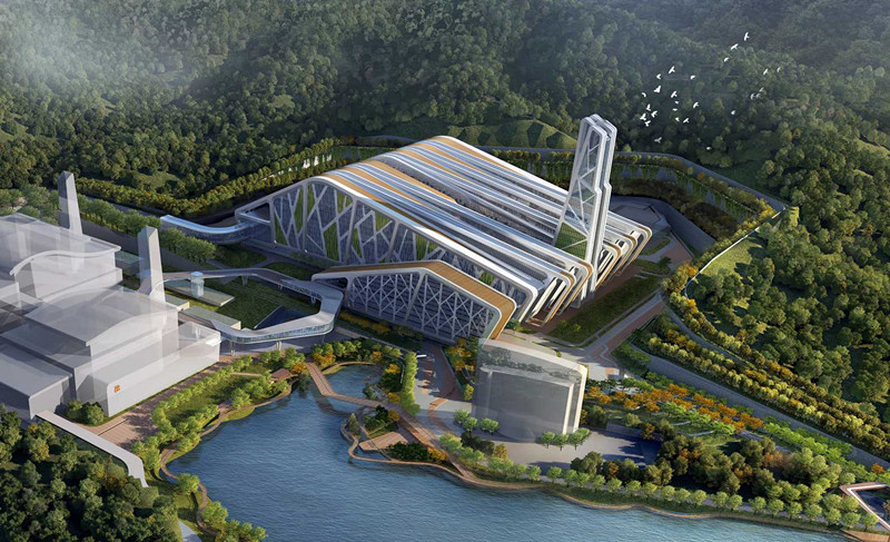 已经完工的老虎坑二期项目,在国内的垃圾焚烧行业已经树立了标杆;老虎坑三期项目,在立项之初就提出了要全方位的超越自我,做到国际领先。本项目的建筑方案为国际招标,最终确定由AECOM公司进行建筑方案设计。方案强调了去工业化,实现建筑与自然的有机融合,更多地融入了公用建筑的设计理念。